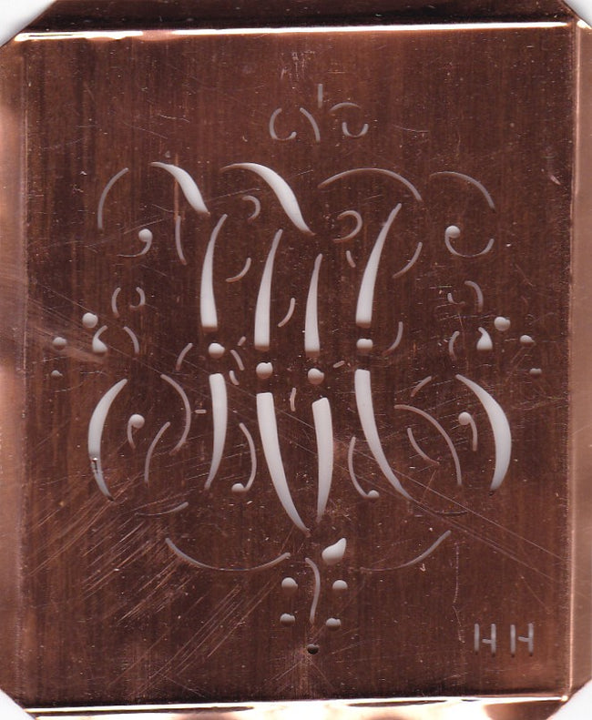 HH - Antiquität aus Kupferblech zum Sticken von Monogrammen und mehr