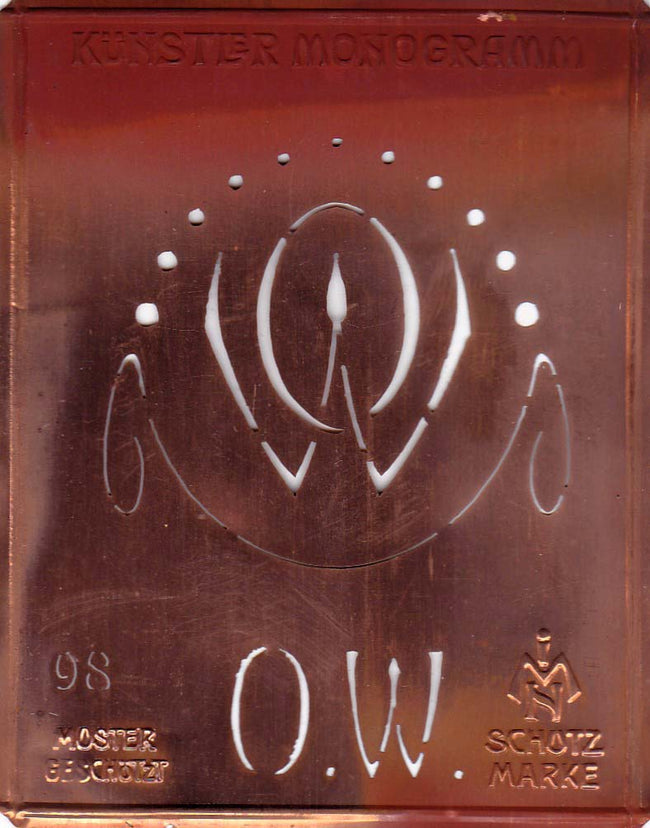 OW - Ausgefallene Kupfer - Monogrammschablone mit Jugendstil Medaillon